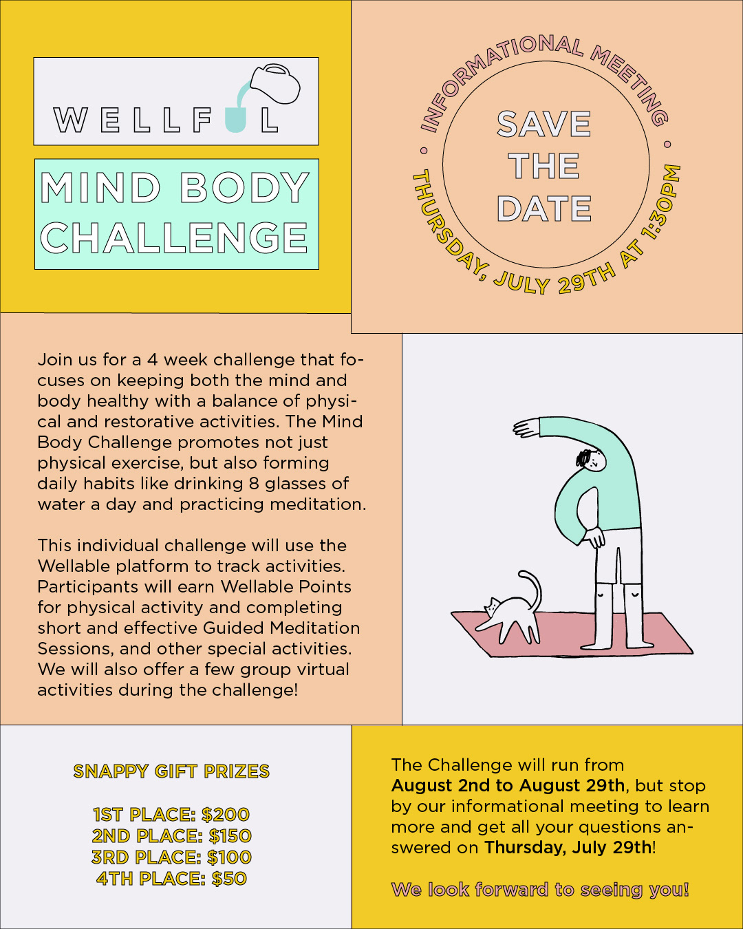 Illustrated, hand-lettered and designed flyer for Wellness event.